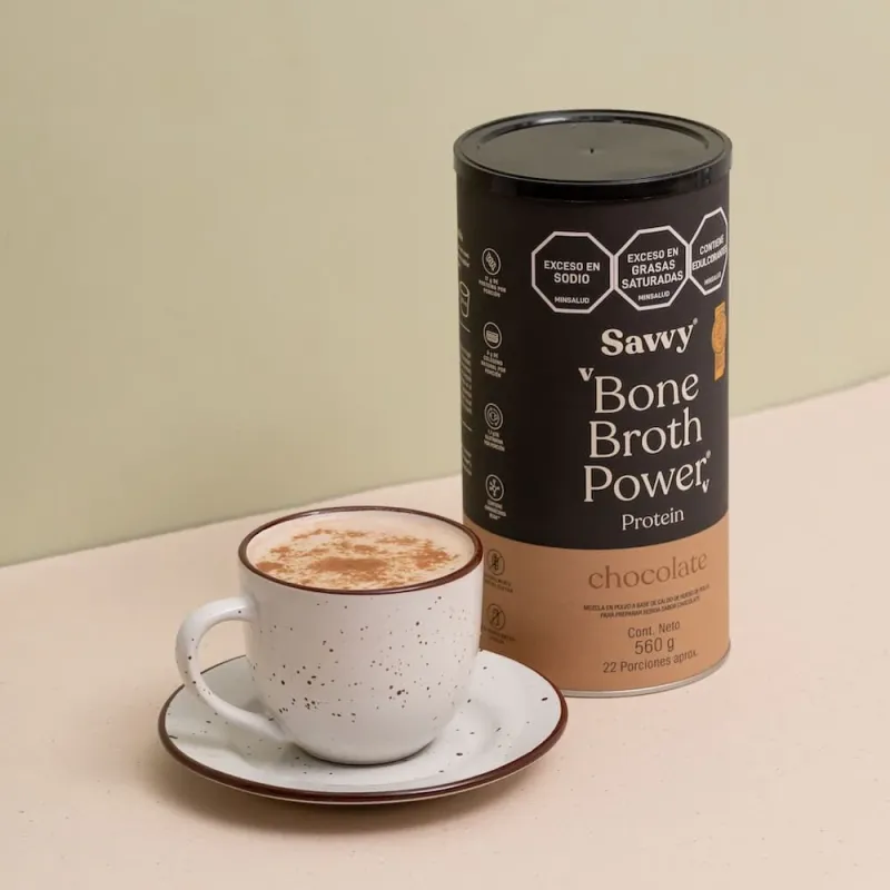 Producto desarrollado por el Doctor Carlos Jaramillo el milagro metabolico . Alimentos hechos con-ciencia . Bone broth power- savvy 560g sabor chocolate. es una mezcla en polvo a base de caldo de hueso de pollo para preparar bebida y alimentos, alta en proteína que ademas esta llena de nutrientes.