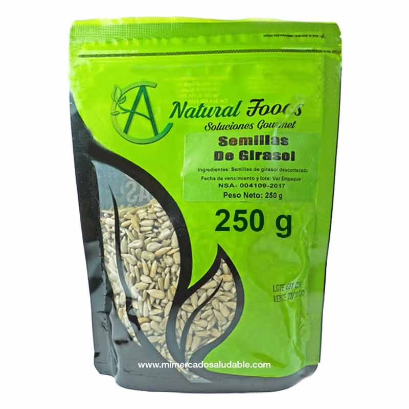 Semillas de Girasol Natural Foods x 250 g Sin tostar libres de gluten. Sin aditivos. Ricas en vitamina E, un poderoso antioxidante. Protege de diferentes enfermedades incluyendo cardiovasculares y complicaciones por diabetes. Es un alimento muy completo al ofrecer vitaminas, fibra y minerales.